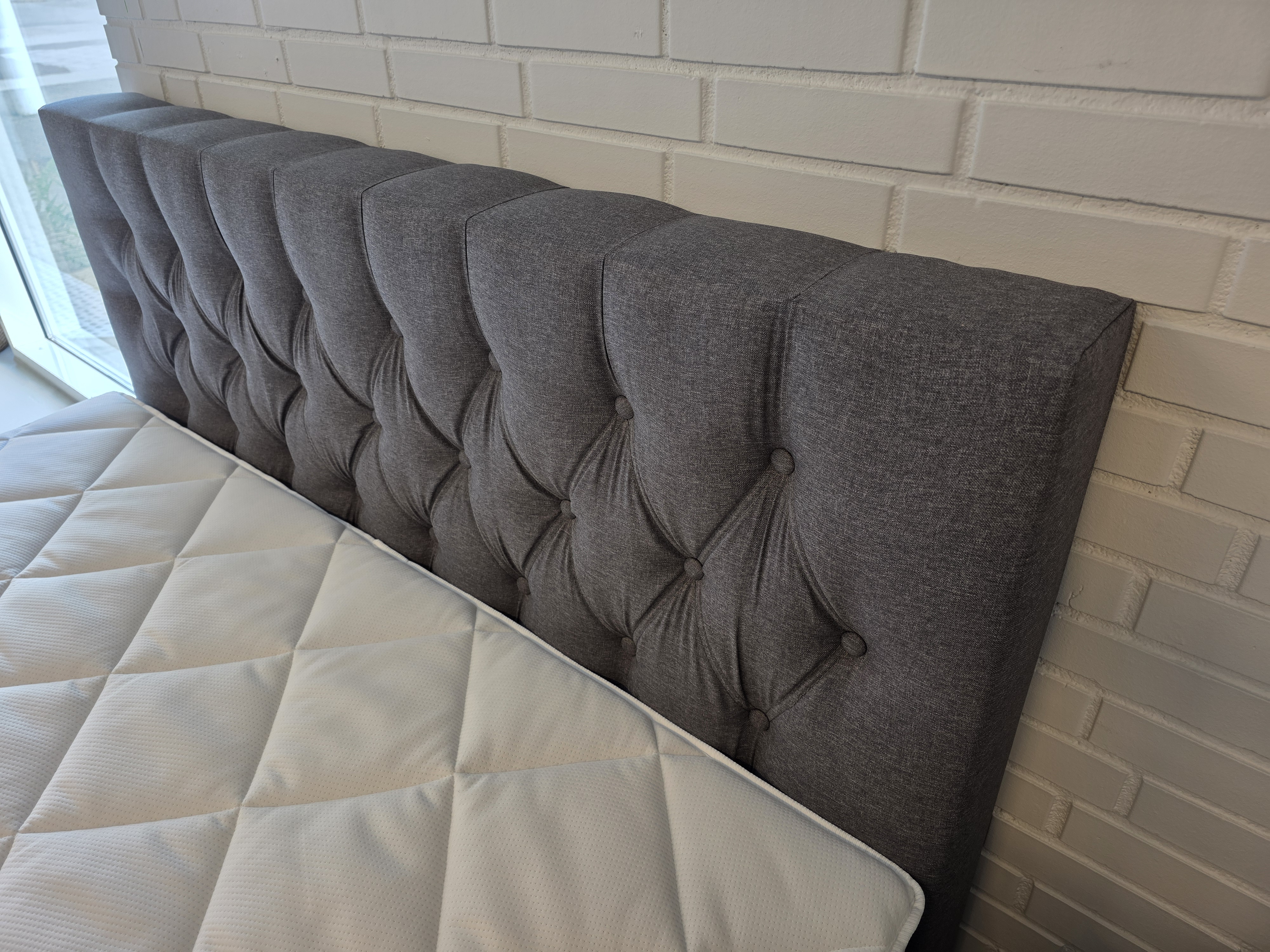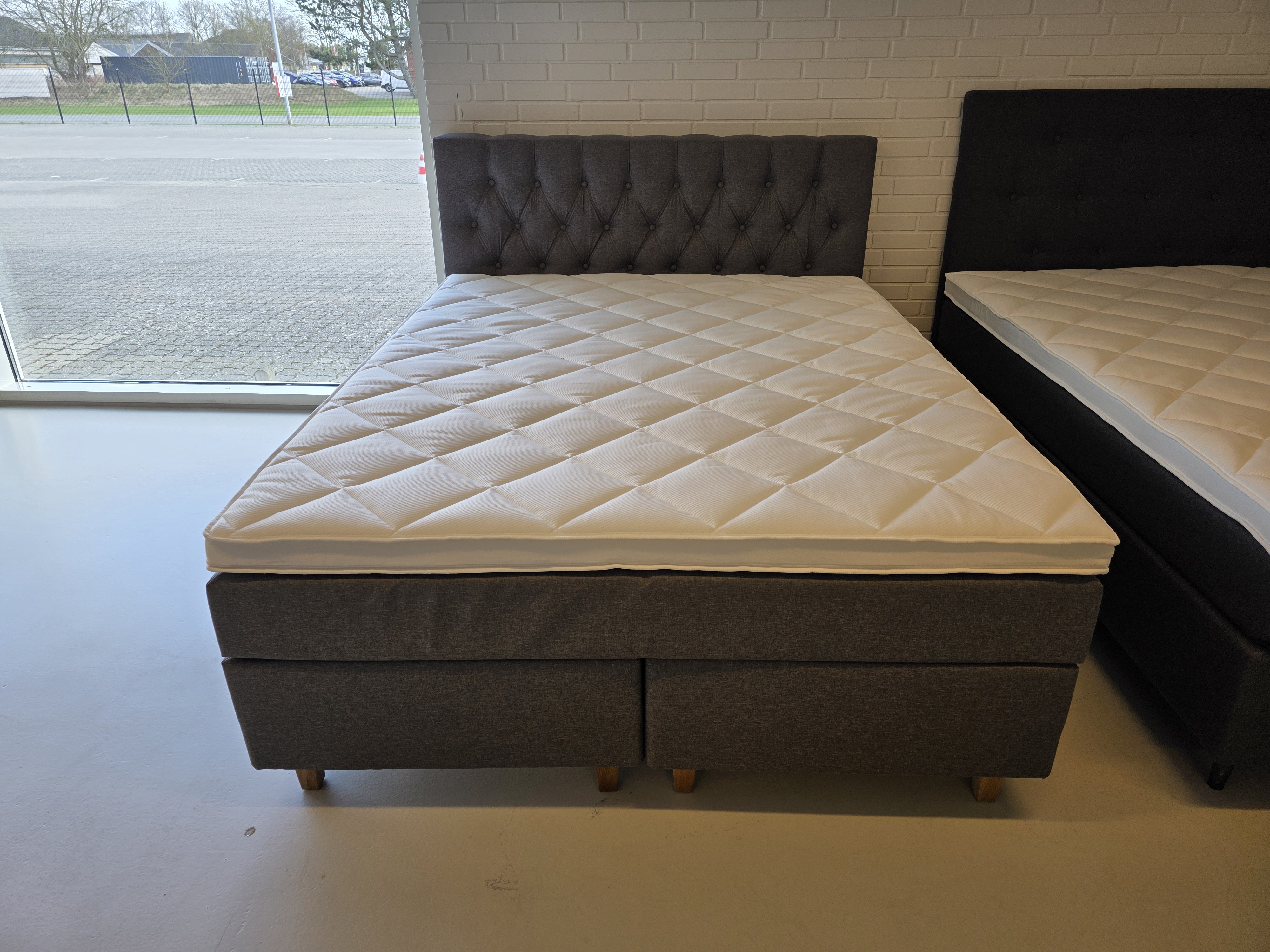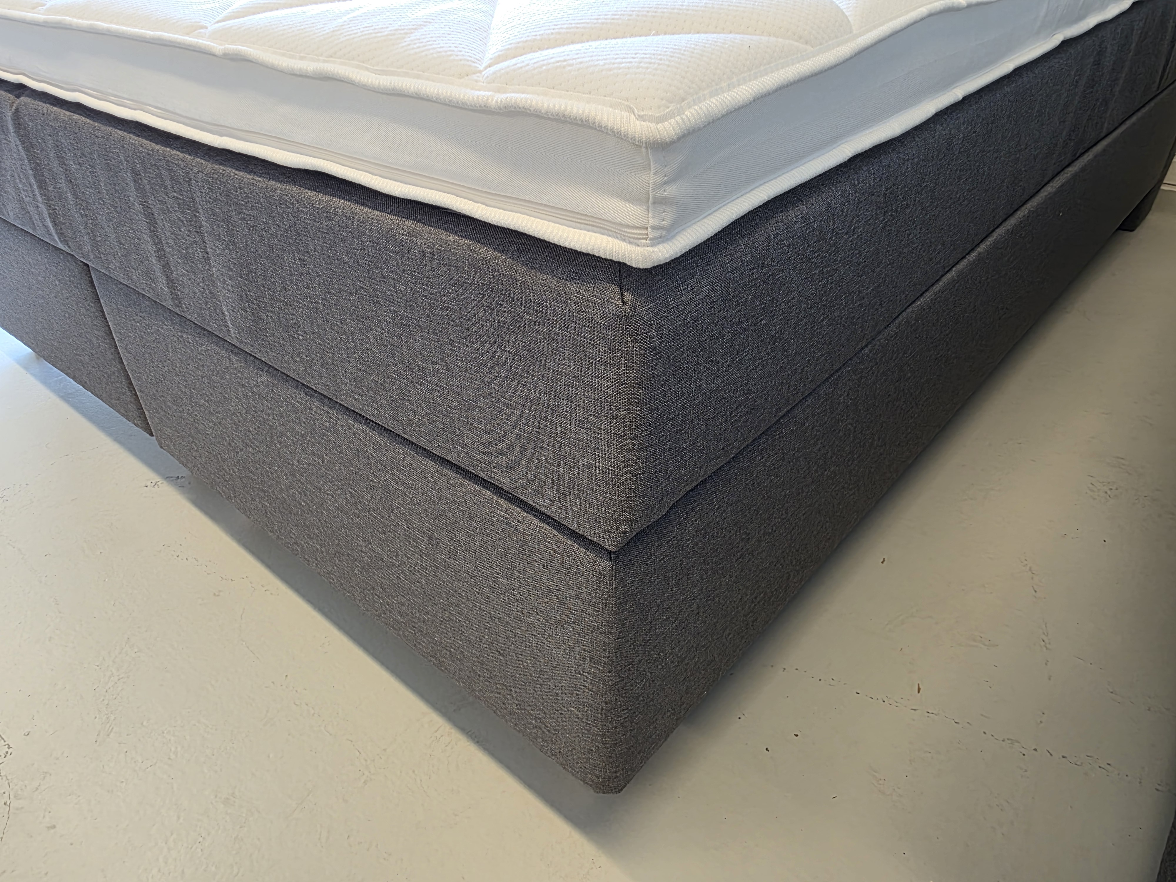 *Fast lavpris* - 160x200 Kontinentalseng, Lys grå. Incl. Sengegavl